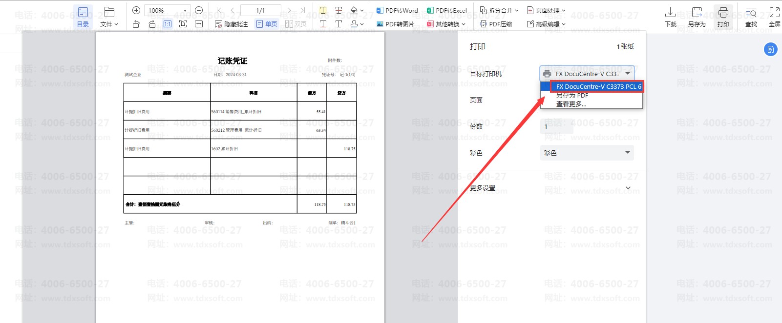 在打印预览界面,将目标打印机切换为实际打印机再打印