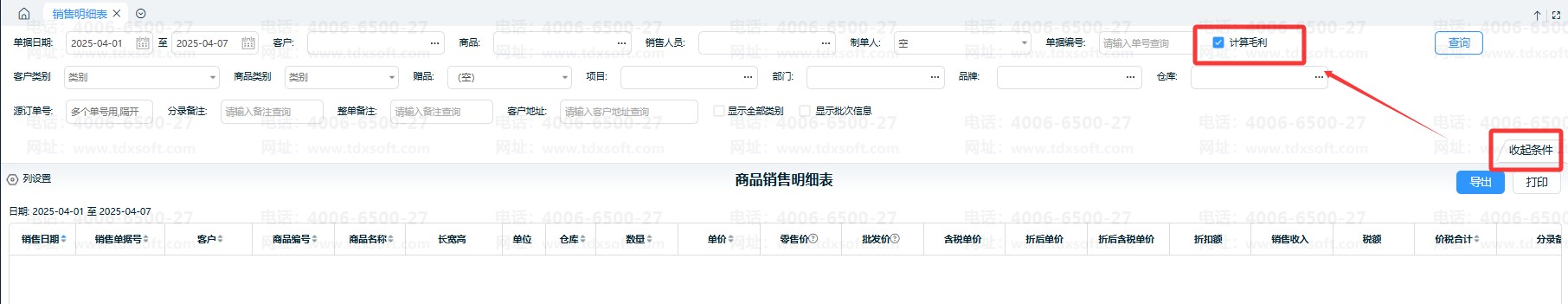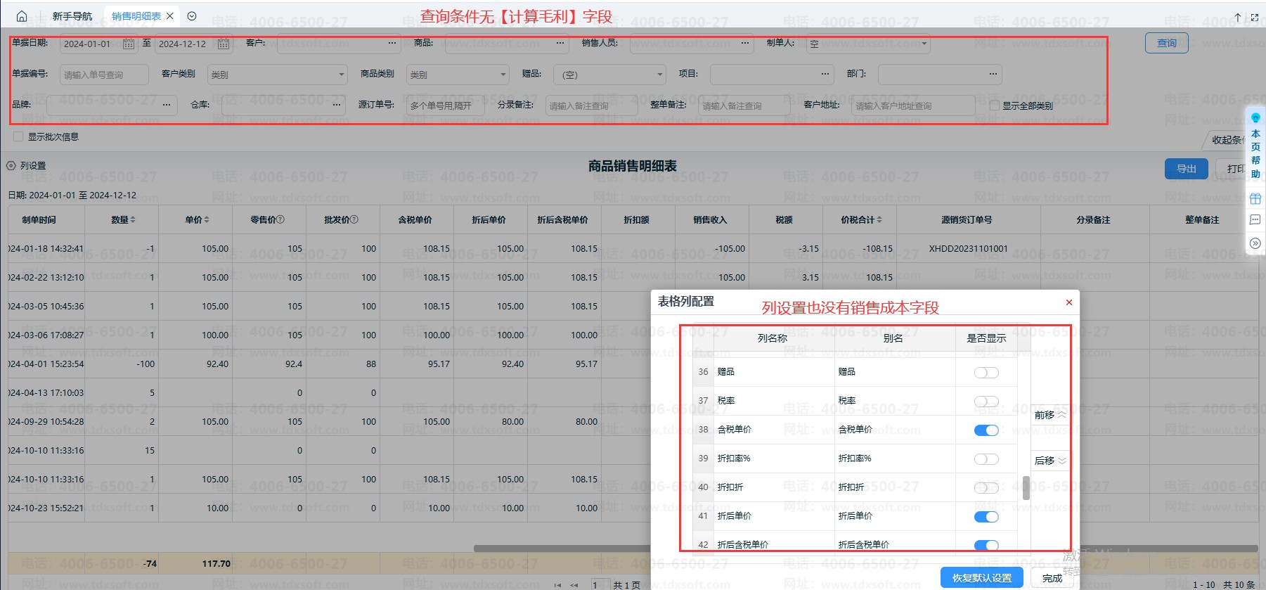 若未分配【计算毛利】字段,销售报表上则无此查询条件。