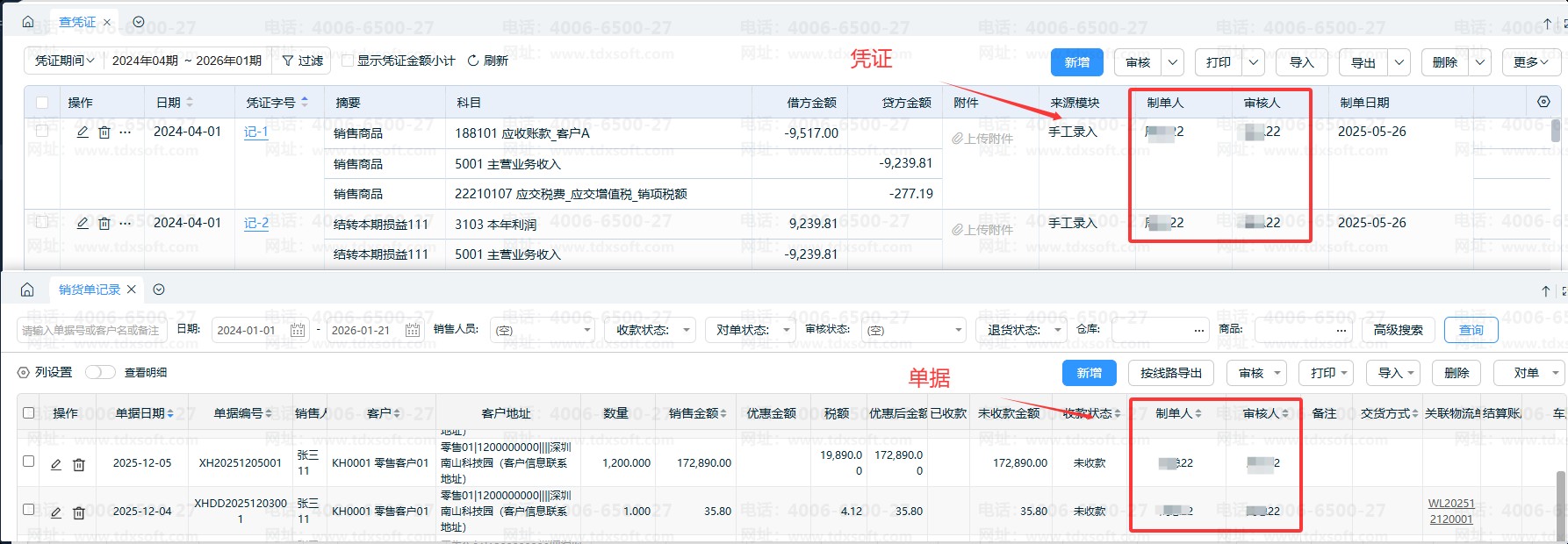 ①制单人:指填制凭证的人,或新增单据的人(进销存业务单据,云报销报销单据等),系统默认取操作制凭证或制单账号对应的姓名。