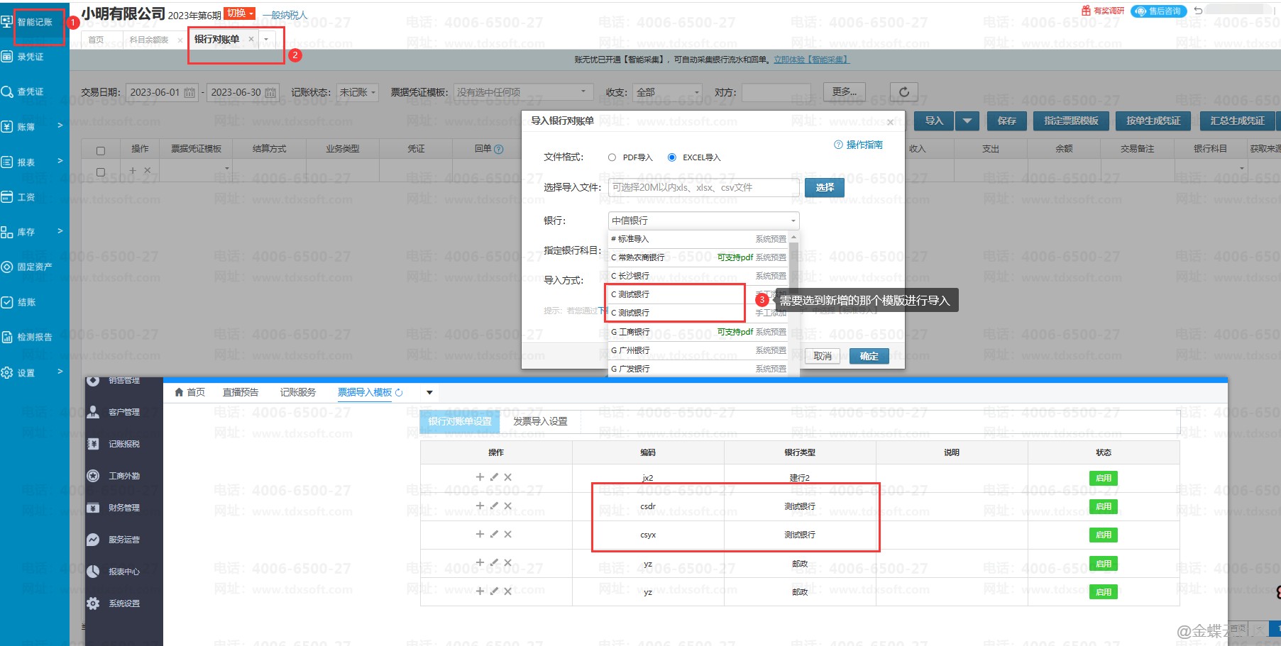 进【银行对账单】界面去导入时,查看下是否选到了新增的那个模版;或者查看下是不是存在两个相同的模版名称,导入时选择错了。重新选择相应的导入模版进行导入就可以了。