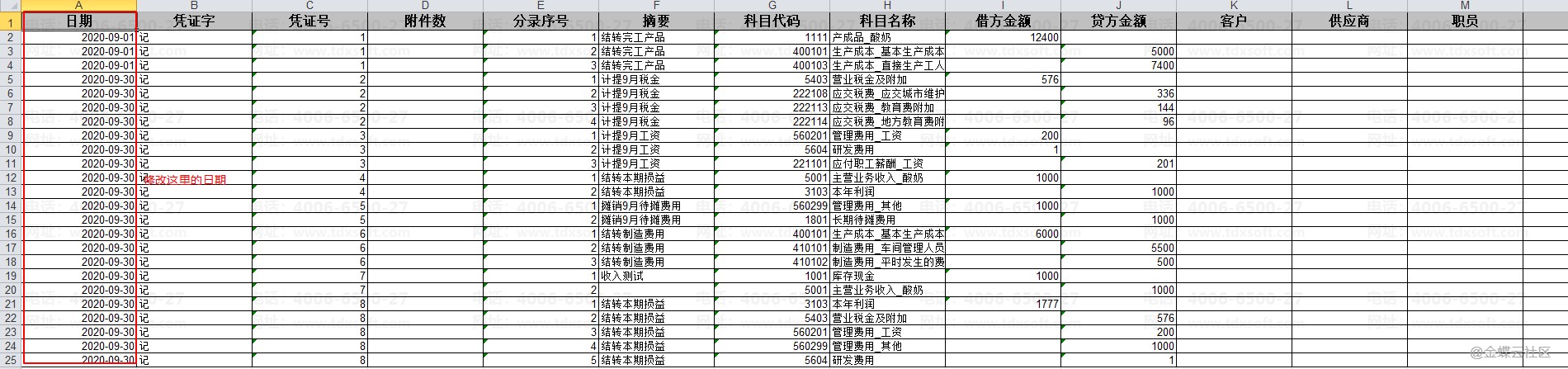 (3)在导出的凭证文件中修改凭证日期