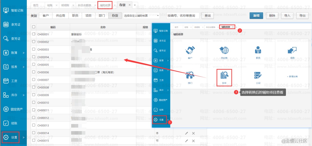3、转换后,进入【设置】→【辅助核算】点击上面转换时选择的辅助项目,即可查看具体转换的辅助核算明细。
