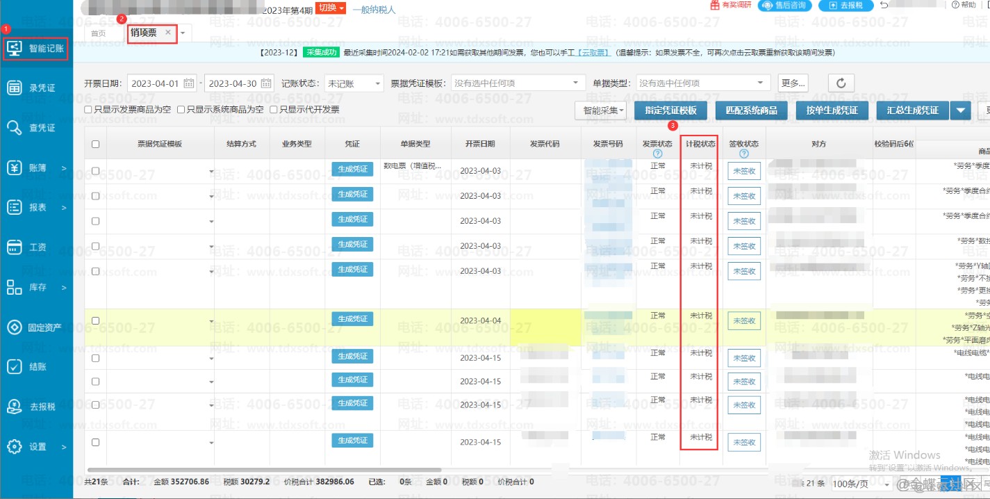 代账公司已开通6.0票税功能才能在账套内进销项票列表页面会显示计税状态
