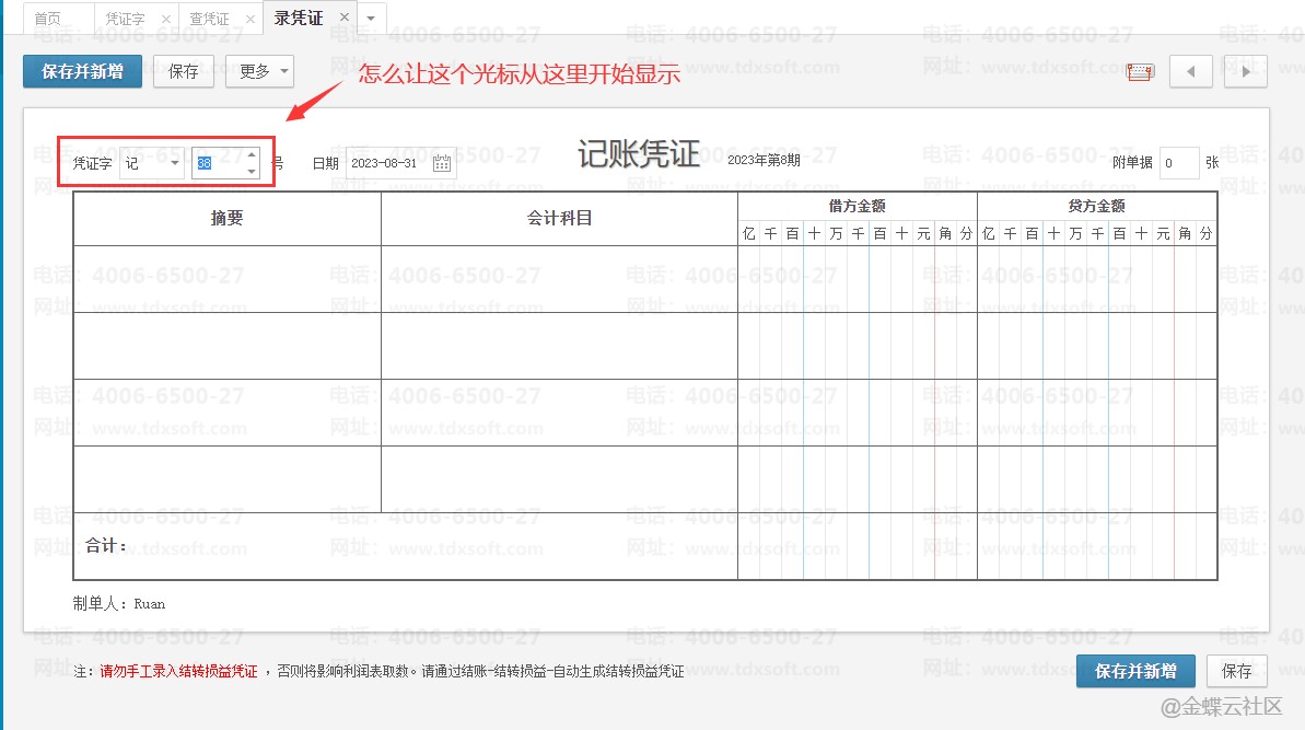 【问题现象】如何让录入凭证的光标从记字开始显示?