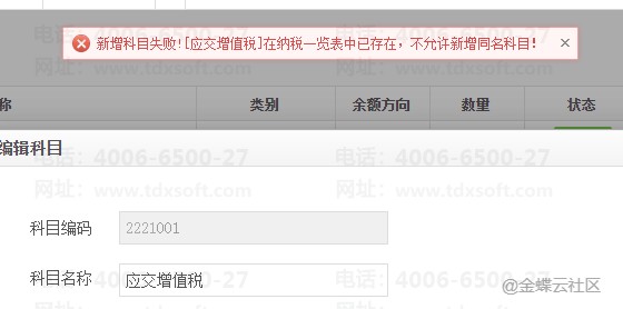 提示语的意思是新增/修改科目的名称不能与纳税一览表的科目名称相同