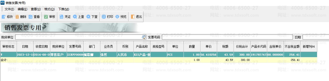 1、下查此销售出库单是否已经下推发票;