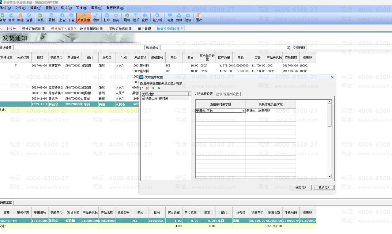 发货通知单维护界面,点击【格式】-【关联信息设置】,设置如下图