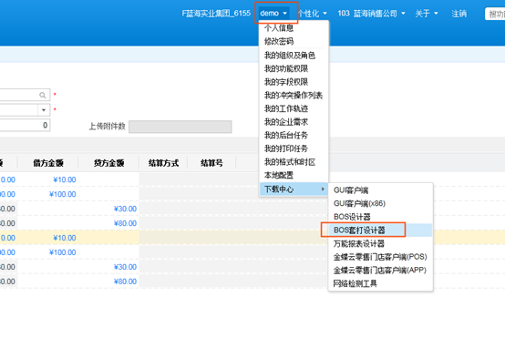 步骤一:打开【BOS套打设计器】并复制一个凭证套打模板。
