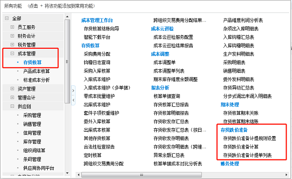 存货跌价准备在金蝶云星空中的应用