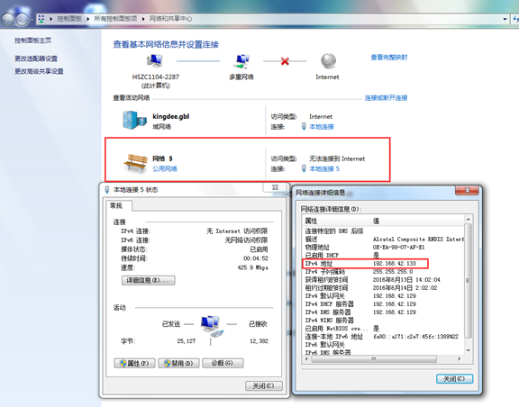 3、在电脑上查看USB共享的网络IP地址