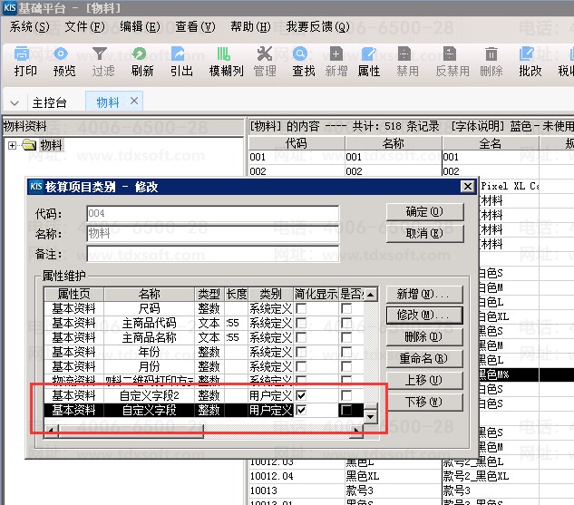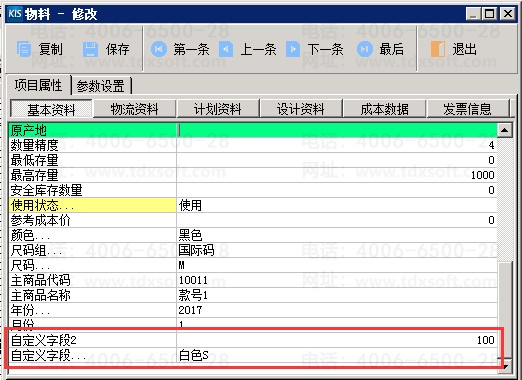 金蝶KIS云旗舰版“固定报表支持物料属性自定义字段的显示”设置说明