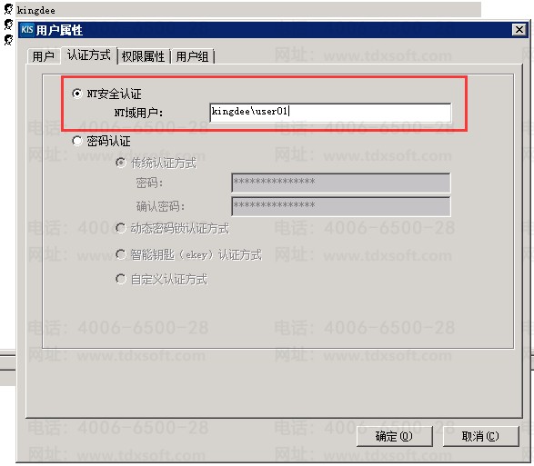 4、勾选第一个“NT安全认证”,输入NT域用户后,点击确定即可;