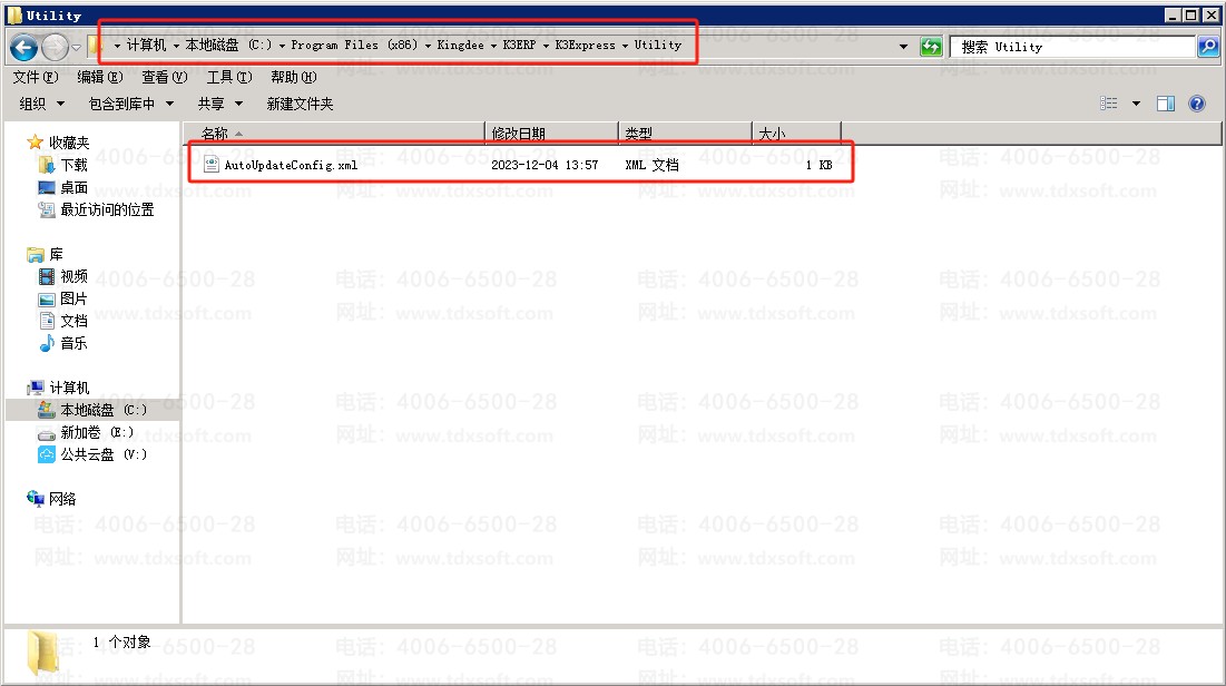1、客户端PC找到安装目录(C:\Program Files (x86)\Kingdee\K3ERP\K3Express\Utility)中文件AutoUpdateConfig.xml;