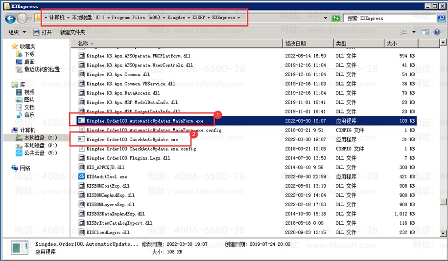 1.  服务器和客户端电脑的安装目录(:\Program Files (x86)\Kingdee\K3ERP\K3Express)的组件(Kingdee.Order100.AutomaticUpdates.MainForm.exe、Kingdee.Order100.CheckAutoUpdate.exe)删除或者改名