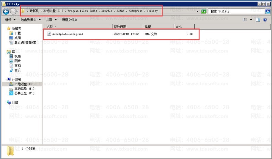 2.  服务器和客户端电脑的安装目录(:\Program Files (x86)\Kingdee\K3ERP\K3Express\Utility)下的这个组件(AutoUpdateConfig.xml)改名或者删除