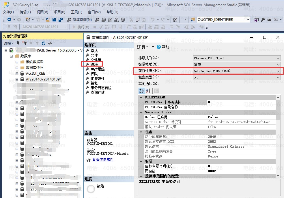 五、    调整数据库实体的兼容性级别到可选到的最高版本级别。