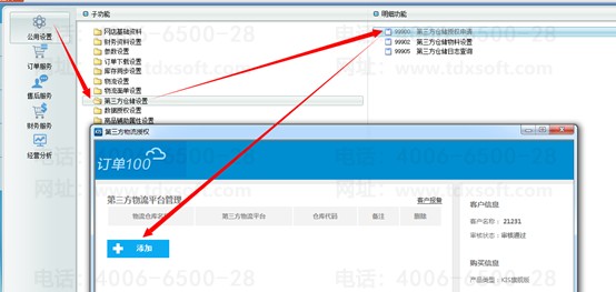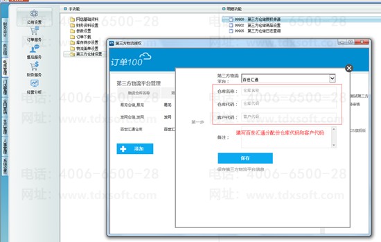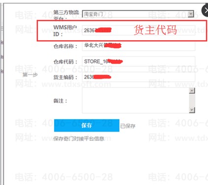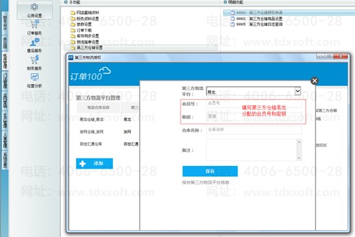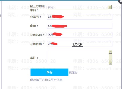 添加物流仓库——填写会员号、仓库号和密钥——保存