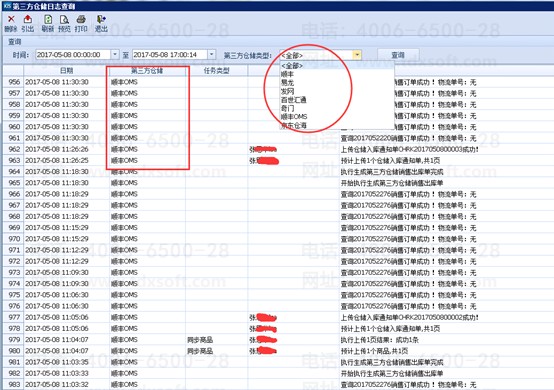 通过【时间】和【第三方仓储类型】进行筛选查询,根据日志信息列表,可对相应第三方仓储平台关于商品信息同步,各类单据的发送,回传情况等详细信息进行跟踪查看。