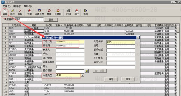 因每个客户所用物流公司不一样,故该资料由客户自行维护。请注意:尽量手工输入物流公司代码和助记码,复制过程中会导致多空格而造成已发货订单的物流信息回传不回来,继而影响上传发货状态。