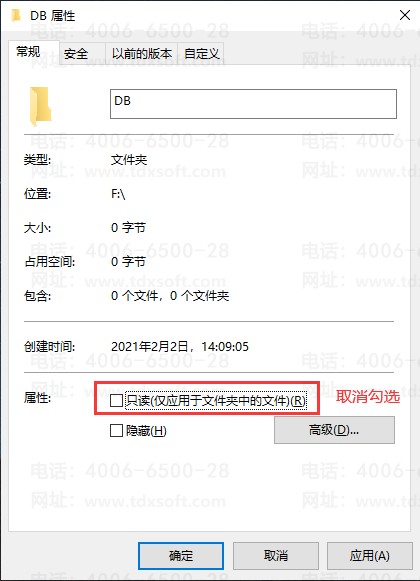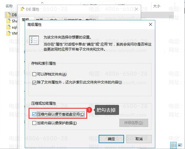 出现此提示的原因是磁盘分区又设置了"压缩文件以节省空间",导致数据库文件无法写入。