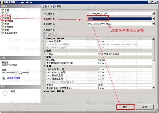 到这里已经完成了,数据库的日志收缩5.如下图,数据库恢复模式修改为完整