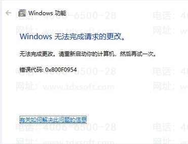 Windows 无法完成请求的更改。错误代码:0x800F0954