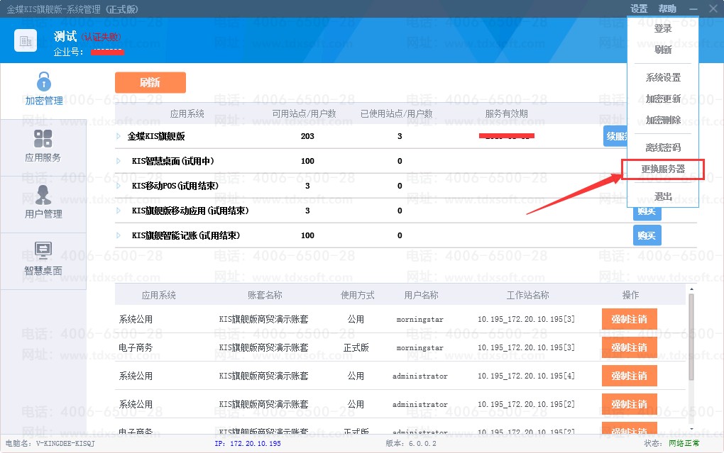 一、卸载前准备卸载前请注意备份以下数据和文档:1.帐套2.本地套打模板(*)V4.2及以上版本请登录系统管理在右上角的设置中点击更换服务器操作