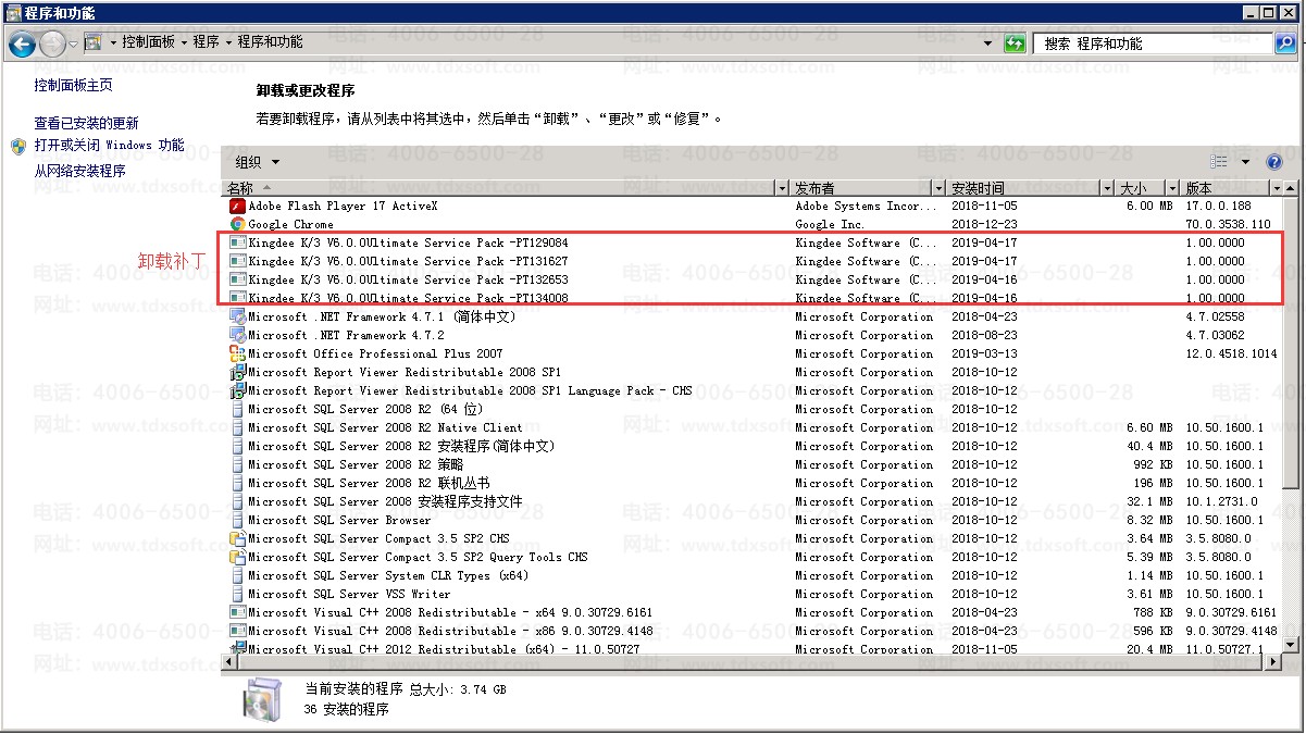 二、卸载1.卸载补丁控制面板—程序与功能—选择KIS旗舰版补丁进行一一卸载