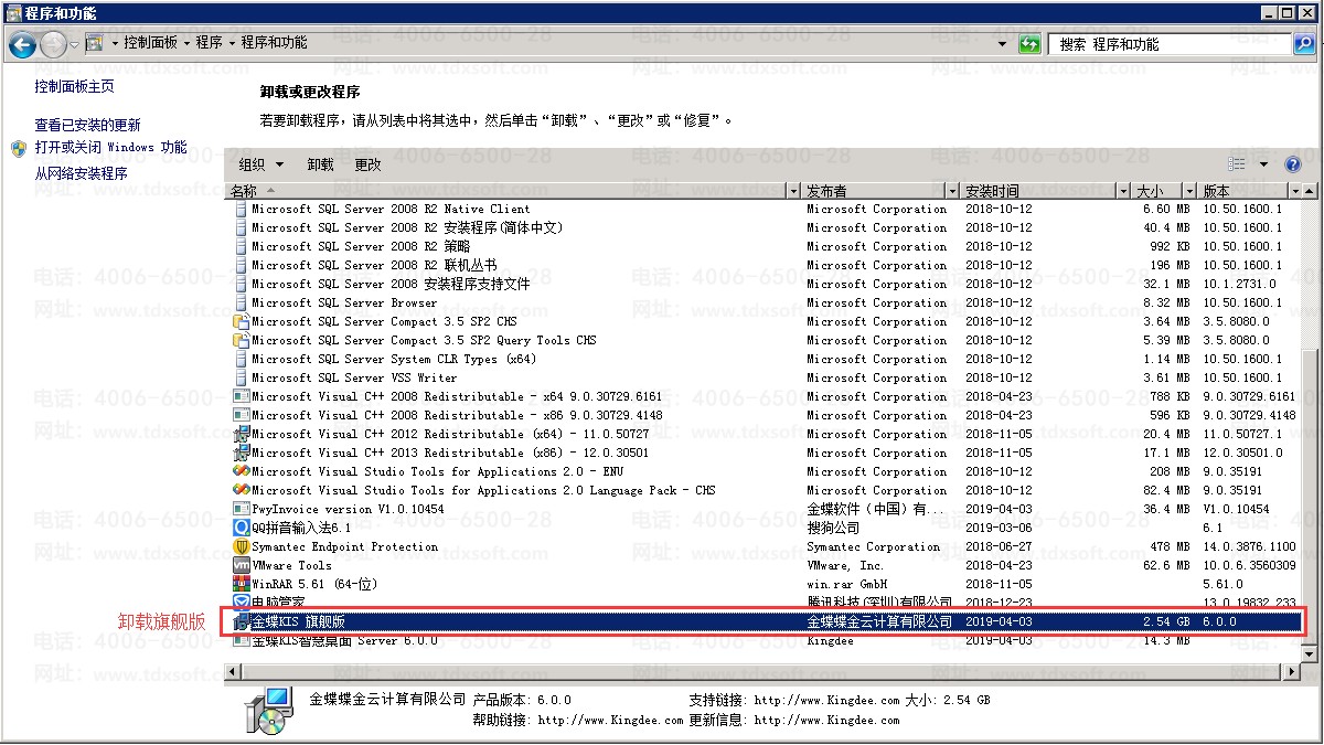 2.卸载KIS旗舰版控制面板—程序与功能—选择金蝶KIS旗舰版进行卸载