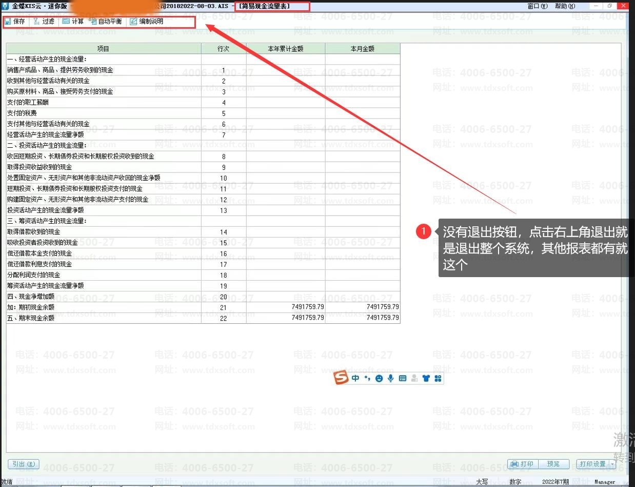 KIS迷你版14.0,简易现金流量表打开没有退出按钮
