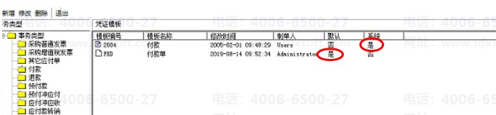 界面显示有两个凭证模板,如果系统参数未勾选“使用凭证模板”则取系统模板(系统为是),勾选了则取默认模板(默认为是)