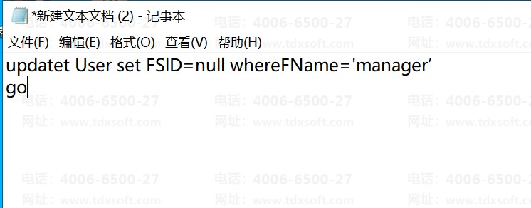 1.先备份账套在操作2.在电脑桌面上新建一个txt得文档,把这个语句复制进去updatet User set FSlD=null whereFName='manager’在这个语句下面加一个go,然后重命名把格式txt改成sql