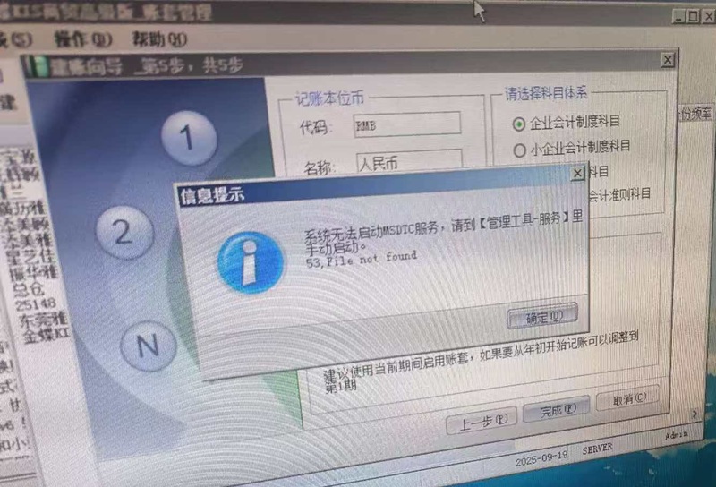 金蝶都可以正常使用,查询,但是 在服务器要新建一个账套,系统提示 系统无法启动msdtc服务,请到【管理工具服务】里手动启动。