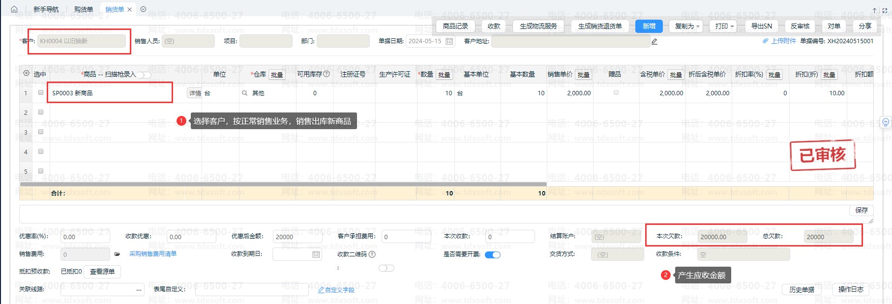 3、换出新商品,即销售新商品,按正常销售业务,以【销货单】记录换出。