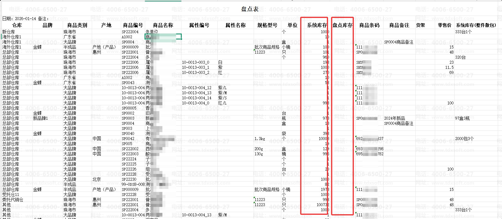 仅导出系统库存为EXCLE文件格式,盘点库存栏为空;导出至本地后,在EXCEL文件手工录入盘点为存后,再导入盘点库存。