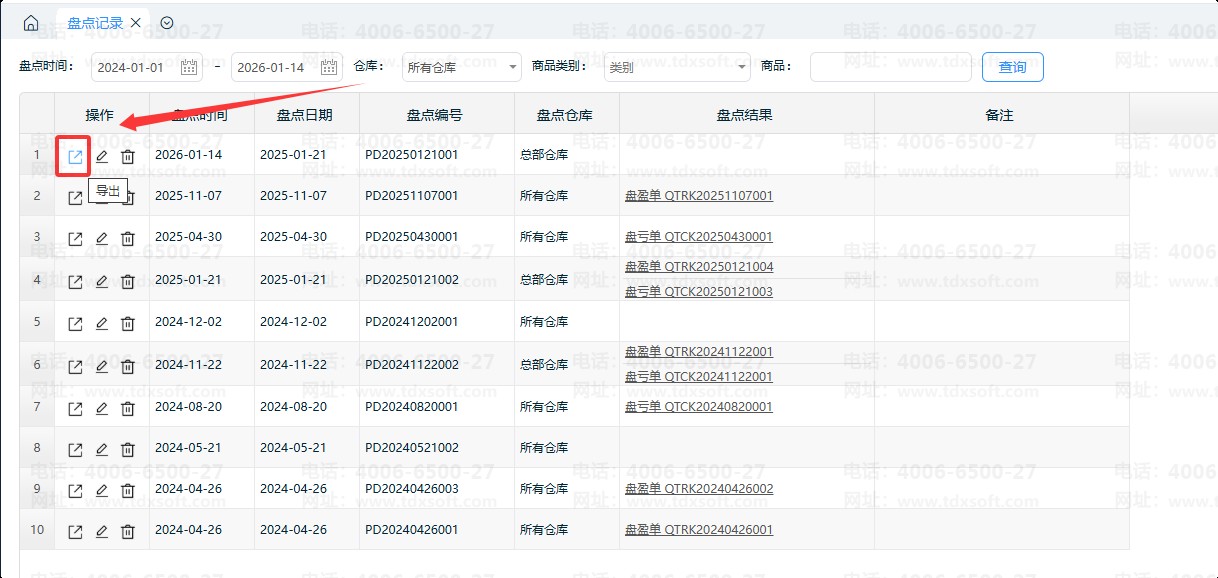 已在系统中录入盘点库存并生成盘点记录,需导出带有盘点库存数的盘点表。