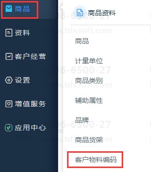 1,在【商品】-【客户物料编码】