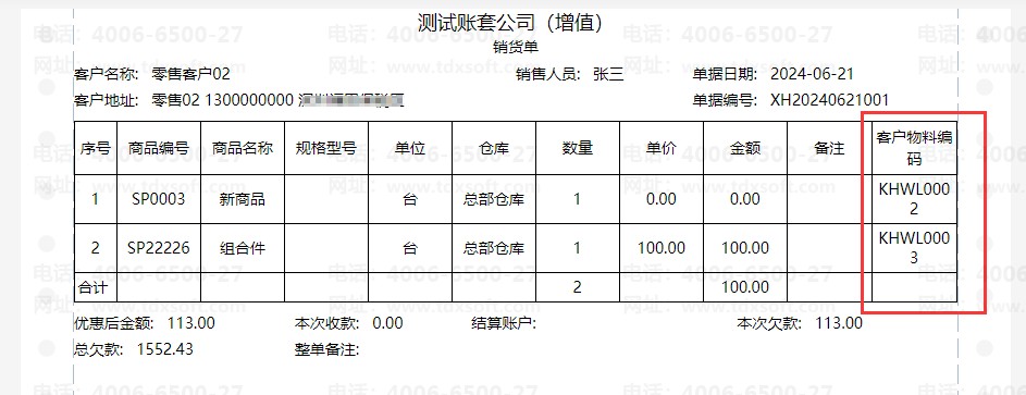 具体打印设置可以参考以下链接:销货单客户物料编码,如何打印
