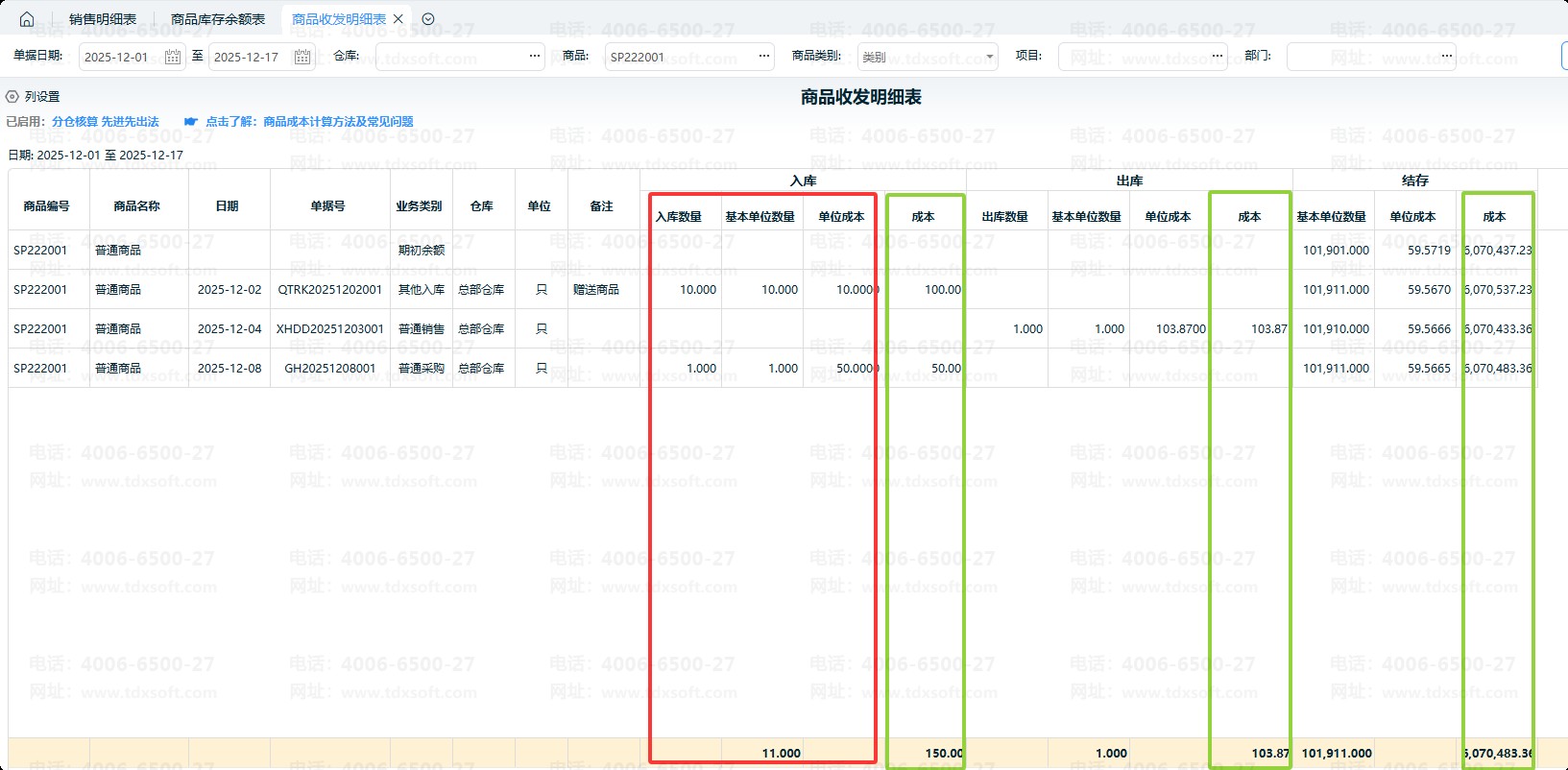 3、库存报表中数量、单位成本与系统参数中设置的小数位数保持一致。报表中的成本统一保留两位小数位。