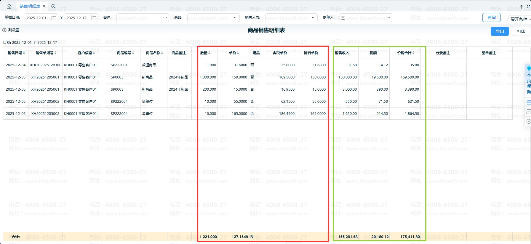 2、业务报表中的数量、单价小数位与系统参数中设置的小数位数保持一致。报表中的收入、税额、价税合计等统一保留两位小数位。