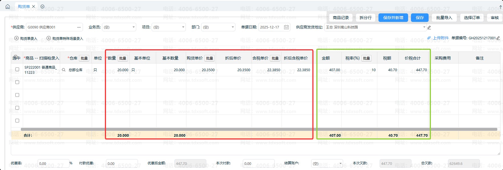 ②单价录入20.35,显示为4位小数位,尾数没有的以0填充,为20.3500元;
