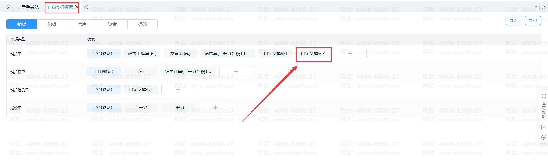 4、重新打开【设置-在线套打模板】界面,即可看到系统自动生成的“自定义模板2”;点击模板名称,打开模板编辑界面,进行编辑或是修改模板名称。