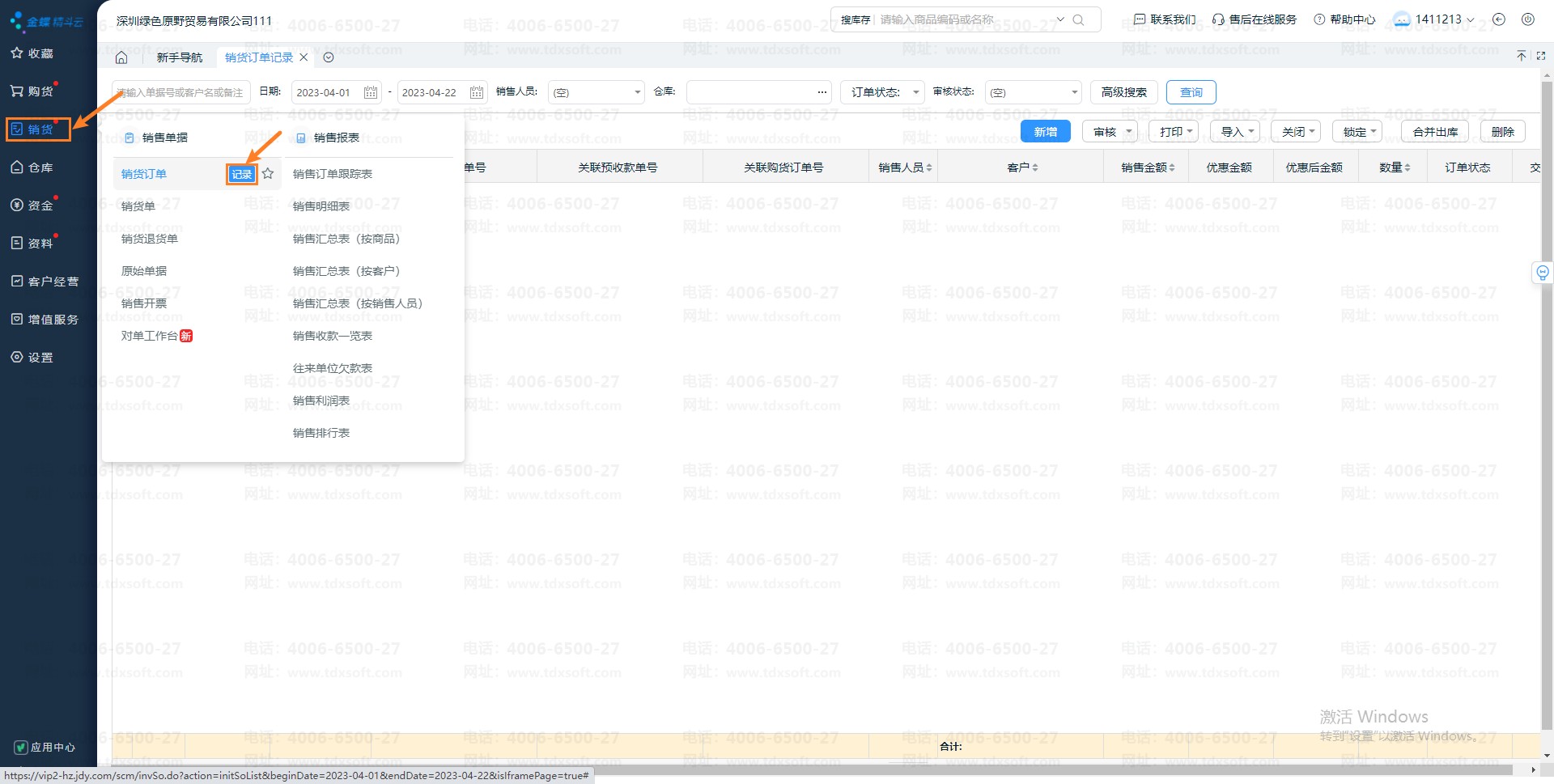 1.【销货】-【销货订单记录】,找到目标销货订单进入编辑