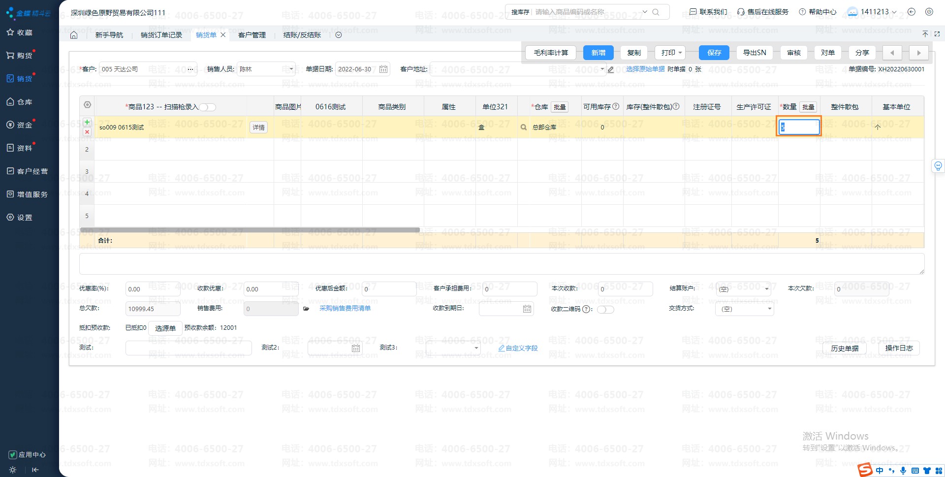 客户订购商品时先录入销货订单,发货给客户时由销货订单生成销货单,因为要分批发货,因此销货订单生成销货单时要注意修改销货单的数量。