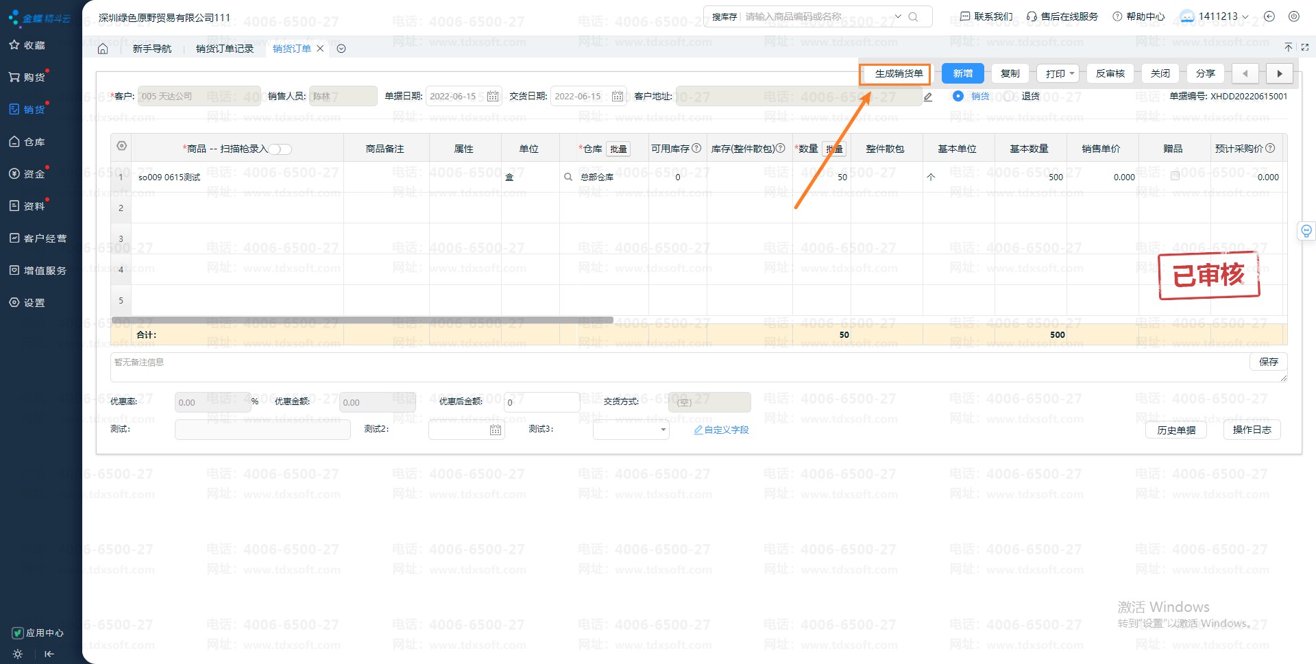 4.后续若出剩下商品,重复以上3个步骤再次通过原销售订单下推销货单