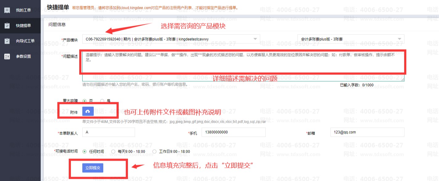 如需要人工协助时,可通过点击右侧【提交工单】按钮反馈问题,由人工跟进处理。