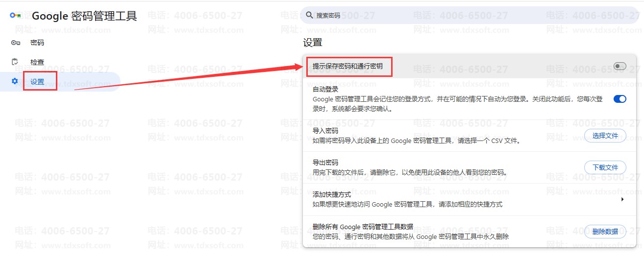 点击【设置】,关闭【提示保存密码和通行密钥】,关闭后下次登录不再提示保存密码