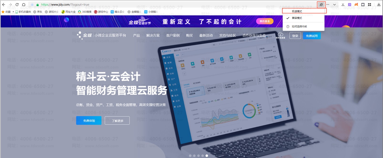 4、第三方浏览器(如:360浏览器、QQ浏览器、猎豹浏览器等)需由【兼容模式】切换为【极速模式】,建议升级至最新版本再进行访问;