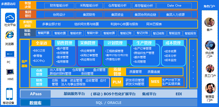 新一代信息技术、云平台的应用是智能制造转型的重要一环。以步科智慧工厂顶层设计为指导方针,步科智慧工厂首先建设了一套涵盖ERP、MES、WMS的软件平台,助力步科构建强有力的内部管理体系,让其内部信息流在各个业务环节高效流转共享,实现企业经营管理、生产执行、仓储物流的高效协同。其中云ERP的搭建,从财务、销售、计划、成本、供应链几个方面实现资源优化、将流程标准化;MES系统的搭建,实现生产过程现场数字化,让生产执行敏捷、高效、透明;WMS系统的搭建,保证物料准时化供应,提高仓储物流效率及透明度,快速响应生产各工序的即时配送要求;并通过 ERP+MES+WMS一体应用提升其内部经营、生产的效率,优化成本管控。
