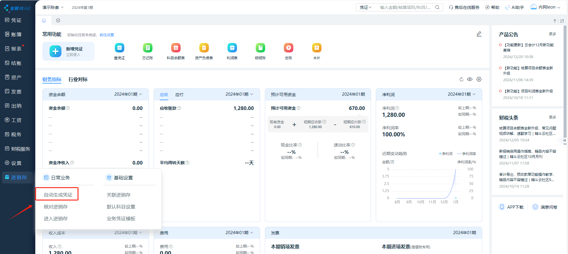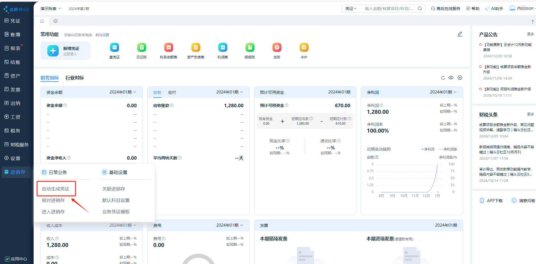 自动生成凭证:增加自动生成凭证设置,自动生成凭证。